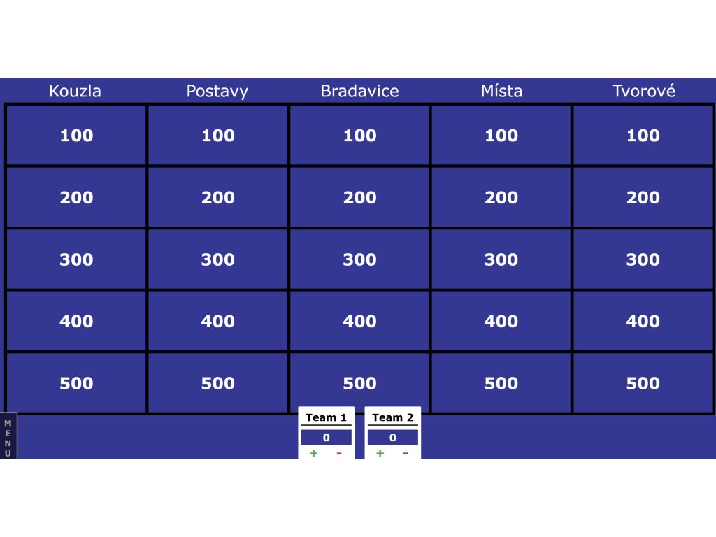 - poté si jednotlivé skupiny volí kategorii i bodovou hodnotu otázky