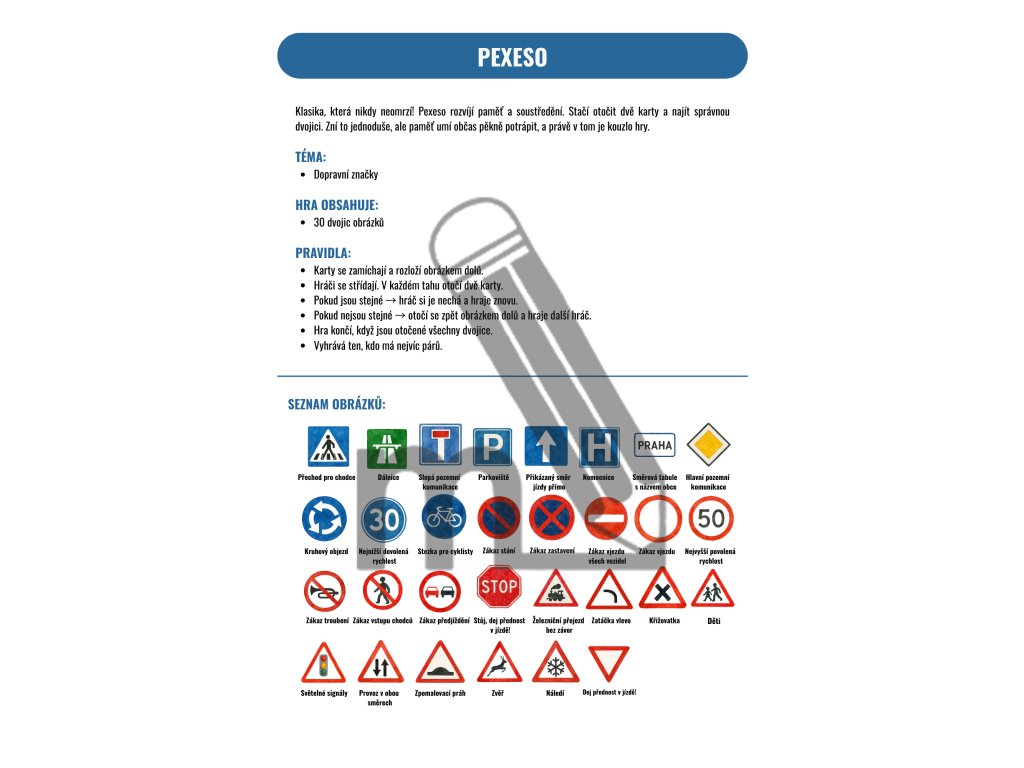 Pexeso - DOPRAVNÍ ZNAČKY