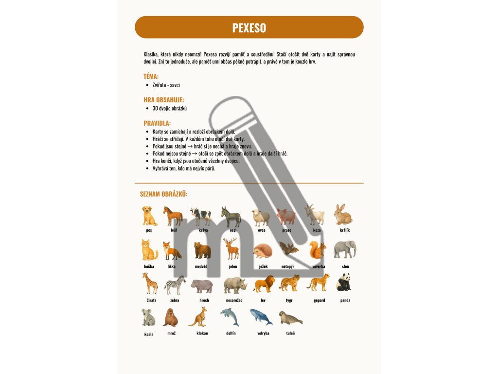 Klasika, která nikdy neomrzí! Pexeso rozvíjí paměť a soustředění. Stačí otočit dvě karty a najít správnou dvojici. Zní to jednoduše, ale paměť umí občas pěkně potrápit, a právě v tom je kouzlo hry.
