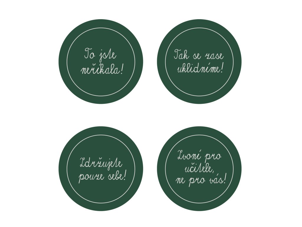 Placka o průměru 44 mm. Zadní strana disponuje špendlíkem, díky kterému se odznak snadno přichytí k jakémukoli materiálu. Výběr ze čtyř variant.