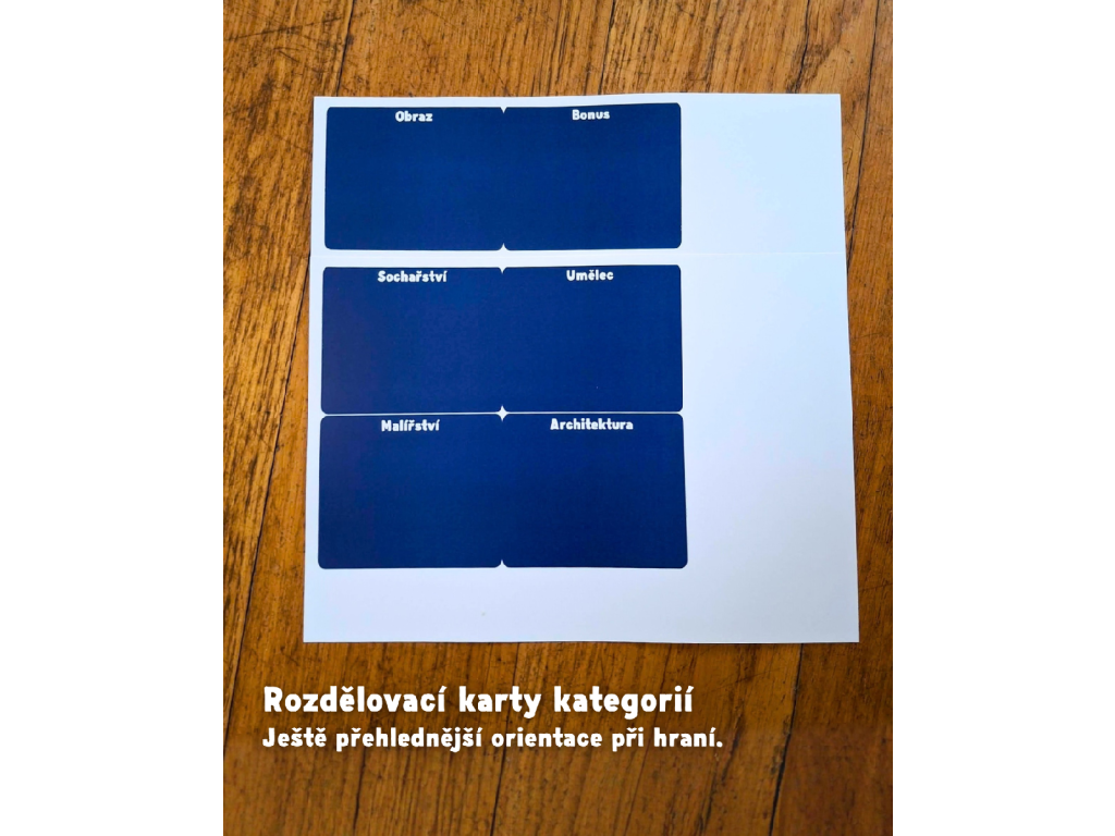 6 kategorií po 100 kartách + přehledný orientační systém pro snadné losování.