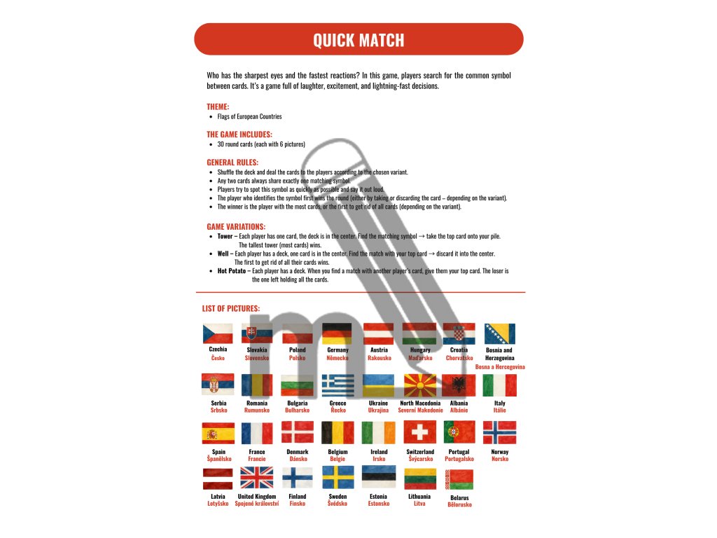 Rychlost, postřeh a spousta legrace! Hráči hledají shodné symboly a při tom si neustále opakují anglická slovíčka k danému tématu. Hra plná smíchu, která procvičí slovní zásobu i bystré oko.