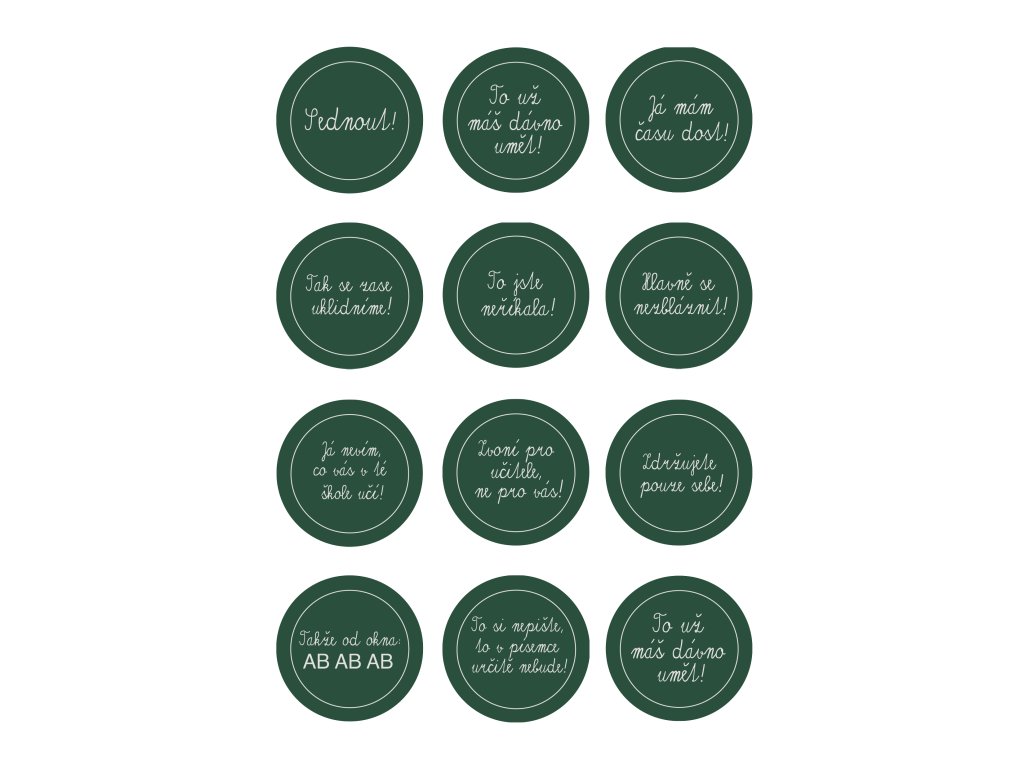 Kultovní věty, které zaznívaly (a stále zaznívají) ve školním světě. Samolepky, které pobaví, rozesmějí nebo třeba připomenou vybraného učitele. Skvělé jako dárek pro kolegy, zpestření kabinetu nebo zábavný doplněk do sešitů či diářů.