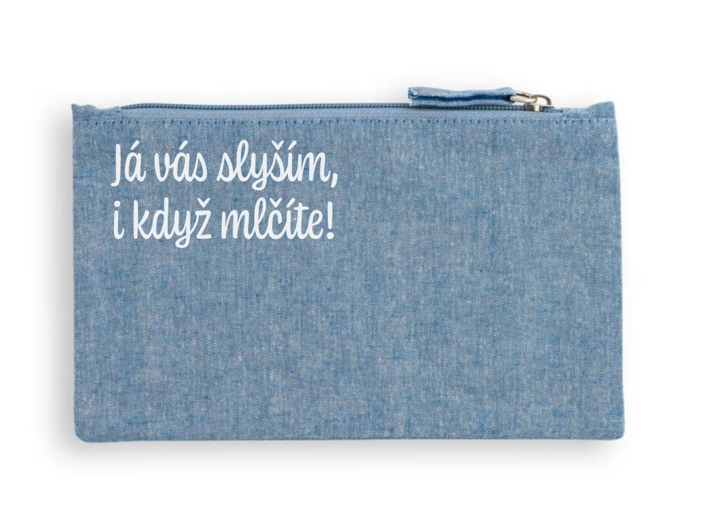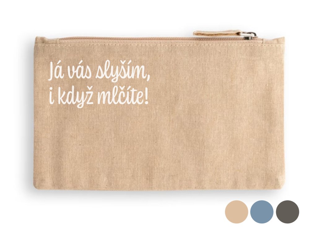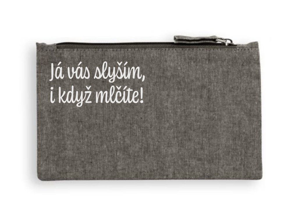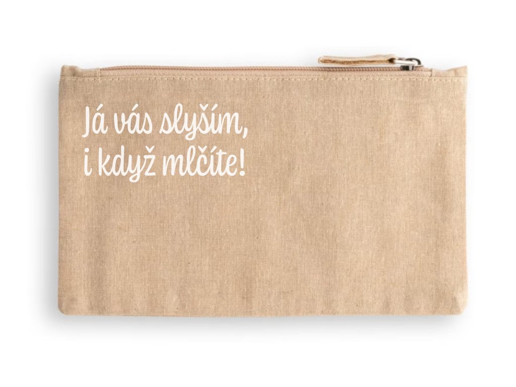 Taštička "Já vás slyším, i když mlčíte" - bílý text