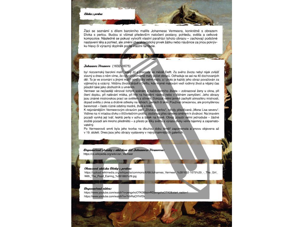Součástí souboru jsou stručná teoretická okénka, přehledné postupy, seznamy pomůcek, časová náročnost jednotlivých aktivit, obrazové ukázky i přílohy k tisku. Aktivity vedou žáky k práci s kontrastem, kompozicí, emocí a k hlubšímu pochopení barokní estetiky prostřednictvím vlastní tvorby.